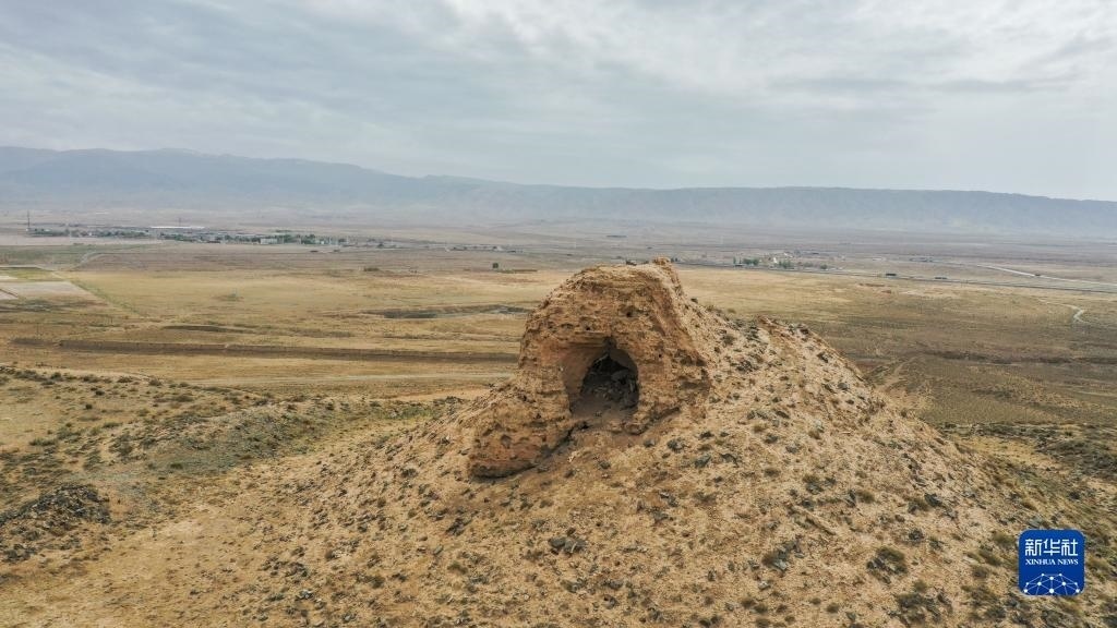 這是5月16日在甘肅省張掖市山丹縣拍攝的金山子烽火臺(無人機照片)。