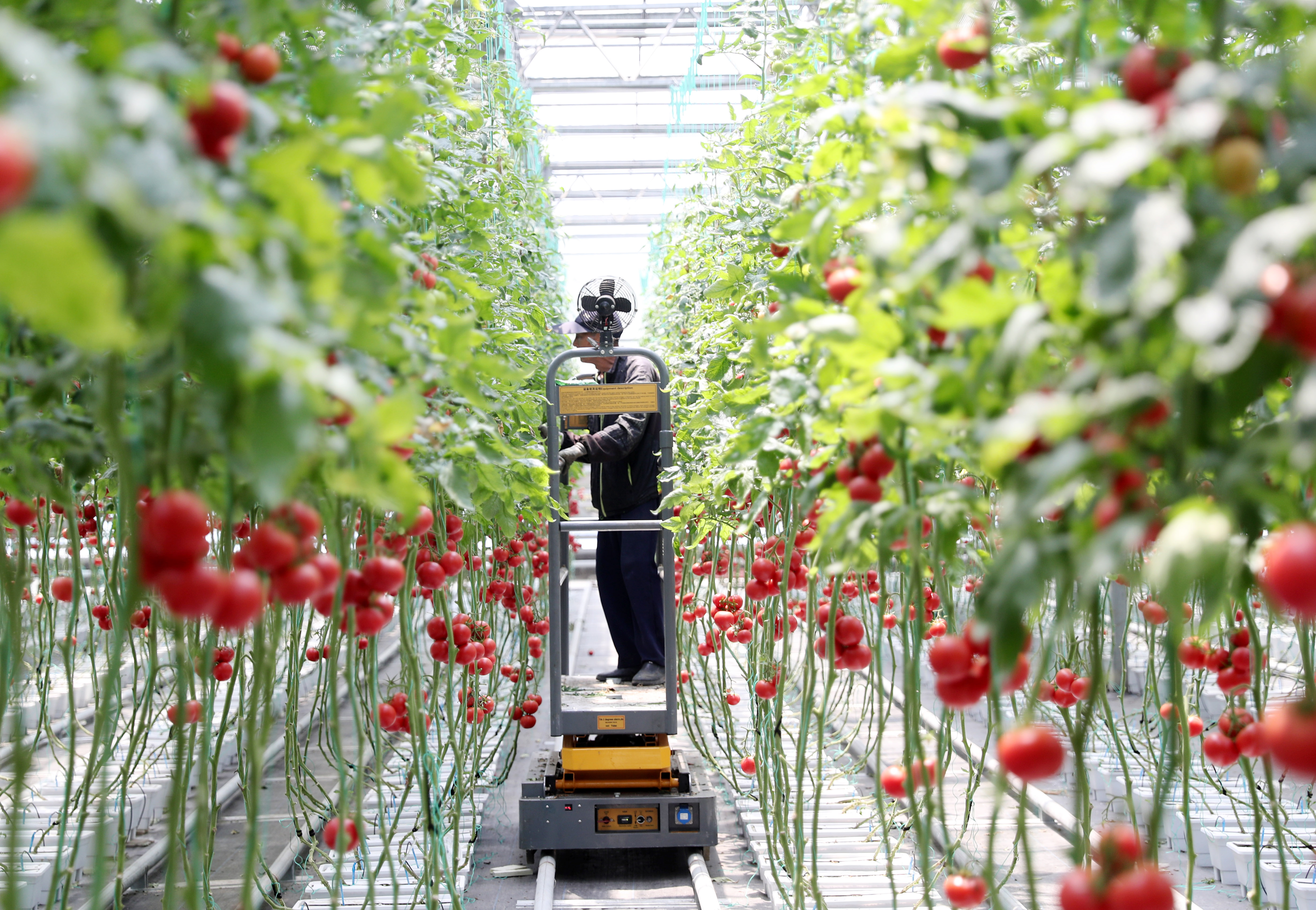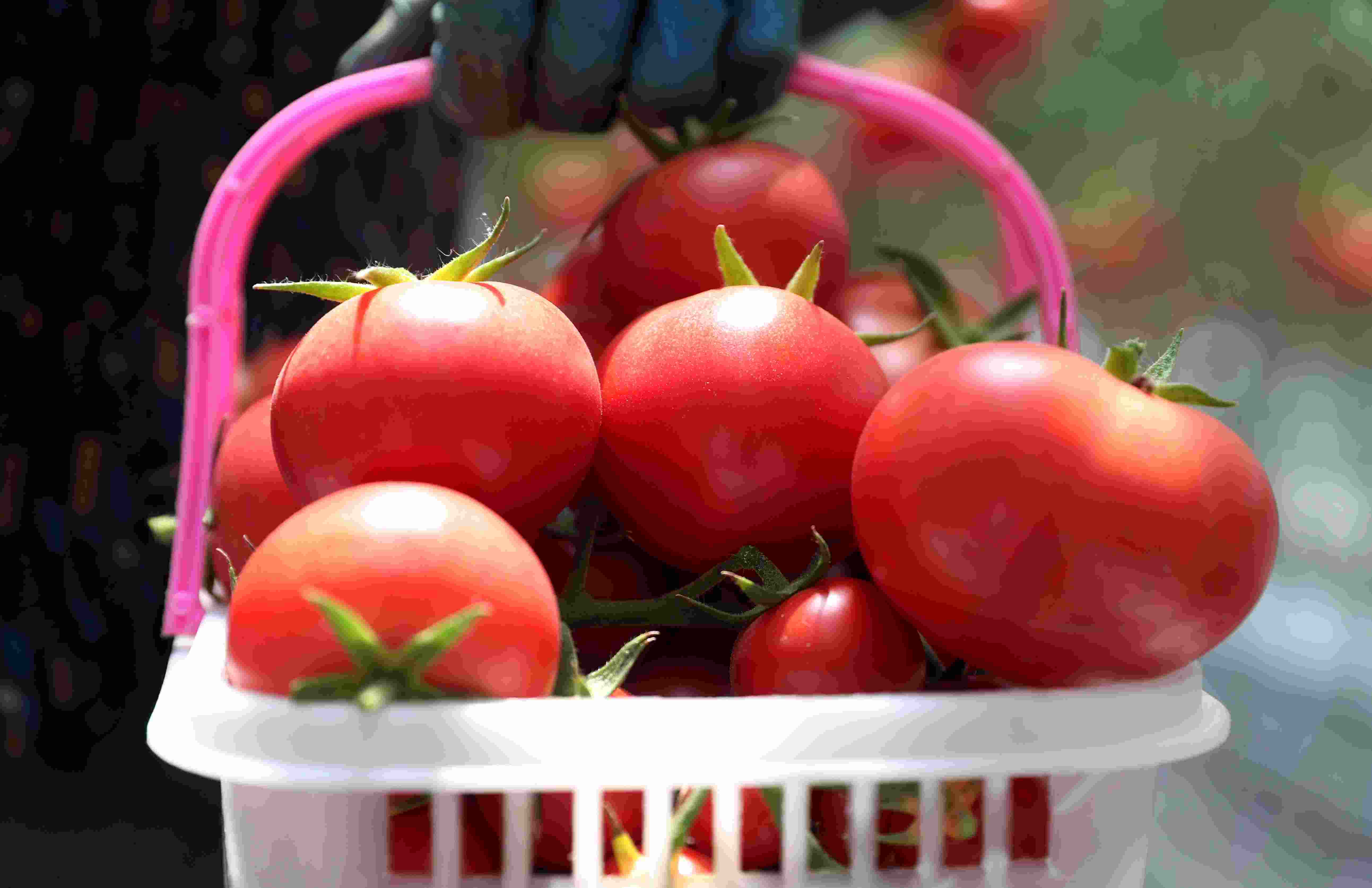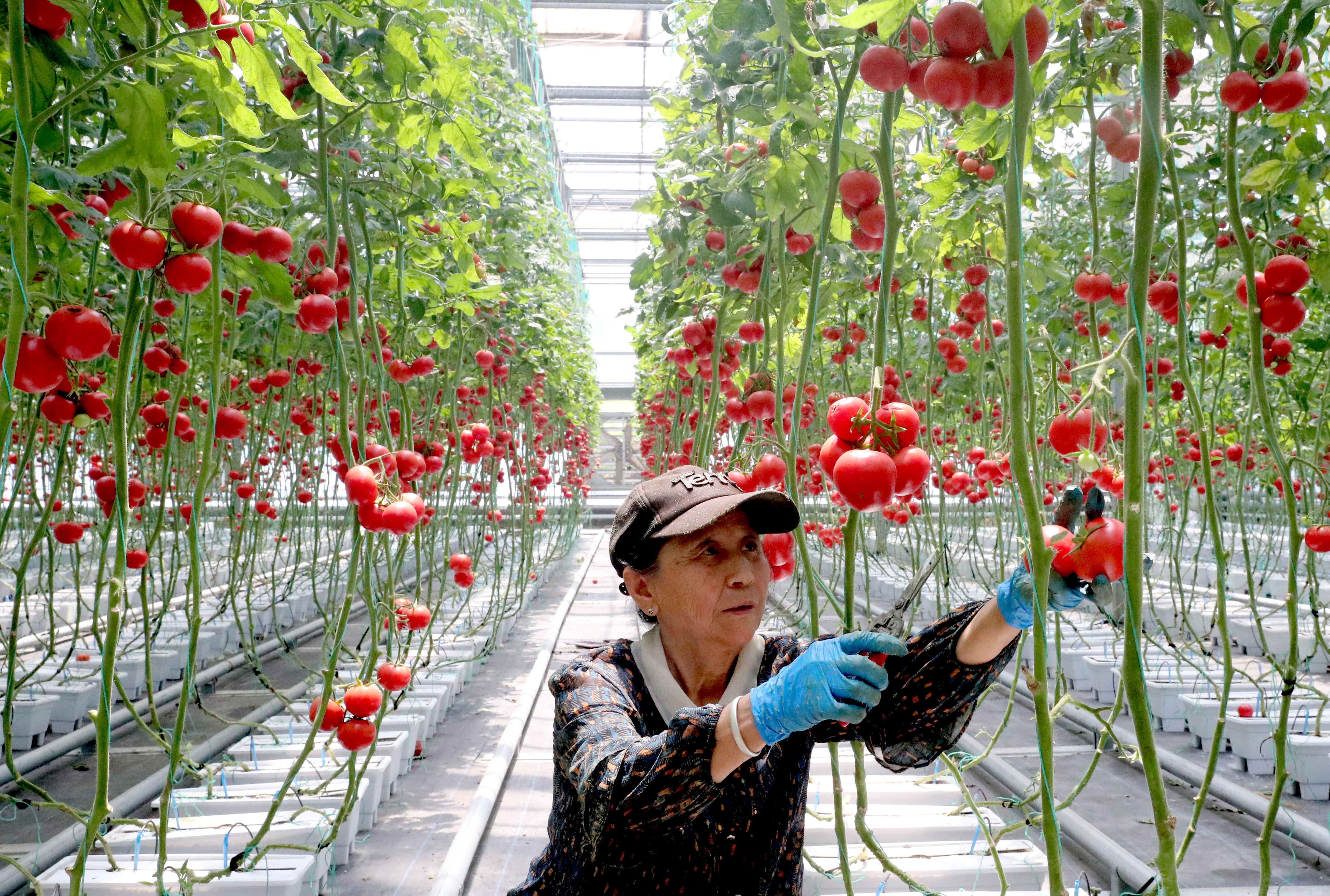 5月15日,村民在青島市即墨區(qū)北安街道一家智慧農(nóng)場內(nèi)采摘西紅柿供應(yīng)市場。 張進剛 攝