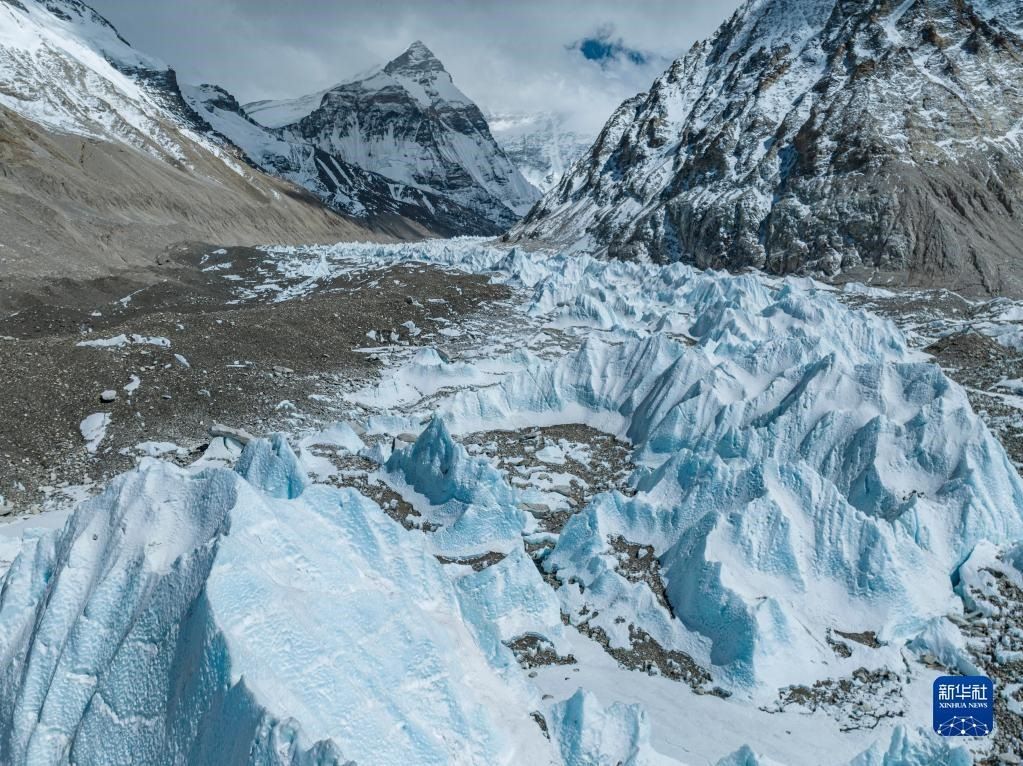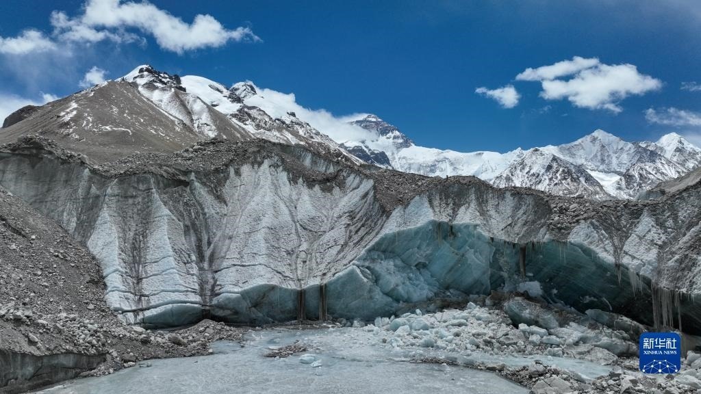 這是珠峰腳下的中絨布冰川(5月15日攝,無人機(jī)照片)。