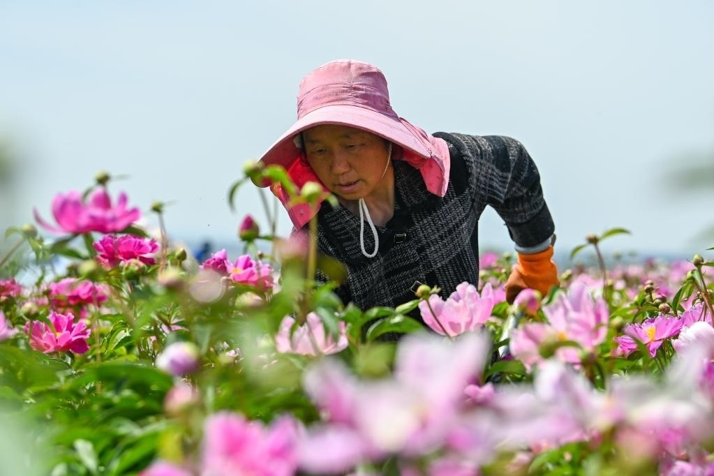 “花經(jīng)濟(jì)”持續(xù)升溫下,越來(lái)越多農(nóng)民走出家門,成為產(chǎn)業(yè)工人。入夏,走進(jìn)伊寧縣天山花海景區(qū),連片芍藥、亞麻花爭(zhēng)相盛開(kāi),工人正在田間加緊除草、養(yǎng)護(hù)。