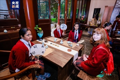 茶,深受世界各國人民喜愛,已經(jīng)成為中國與世界人民相知相交的重要媒介。來自多國的少年“國際茶文化小使者”,現(xiàn)場(chǎng)齊聲誦讀茶經(jīng),演唱歌曲《中國茶》,用歌聲講述“中國茶”的故事。