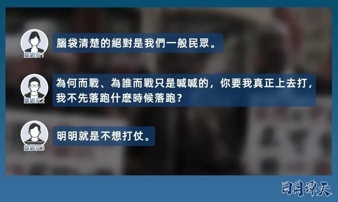 島內(nèi)專家給譚主分析了臺灣青年不愿再賣命背后的深層邏輯。越來越多臺青意識到,“臺獨”意味著戰(zhàn)爭,為“臺獨”上戰(zhàn)場,打的是一場非正義的分裂國土之戰(zhàn),要背負(fù)歷史罵名,臺灣年輕人憑什么要為此賭上性命?與其被民進(jìn)黨當(dāng)局裹挾著為“臺獨”送死,不如盡早“跳車”,遠(yuǎn)離臺軍。