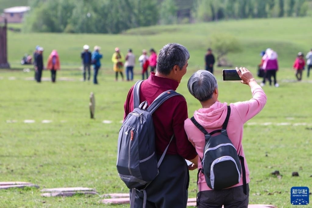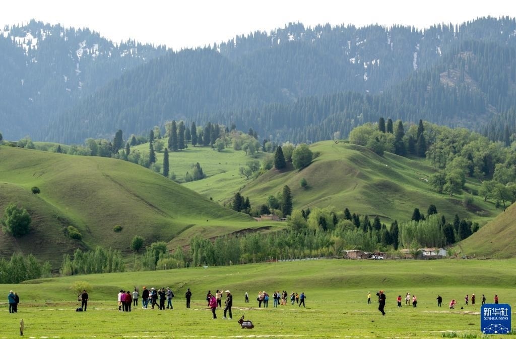 5月20日,游客在位于新疆新源縣的那拉提旅游風(fēng)景區(qū)觀光。