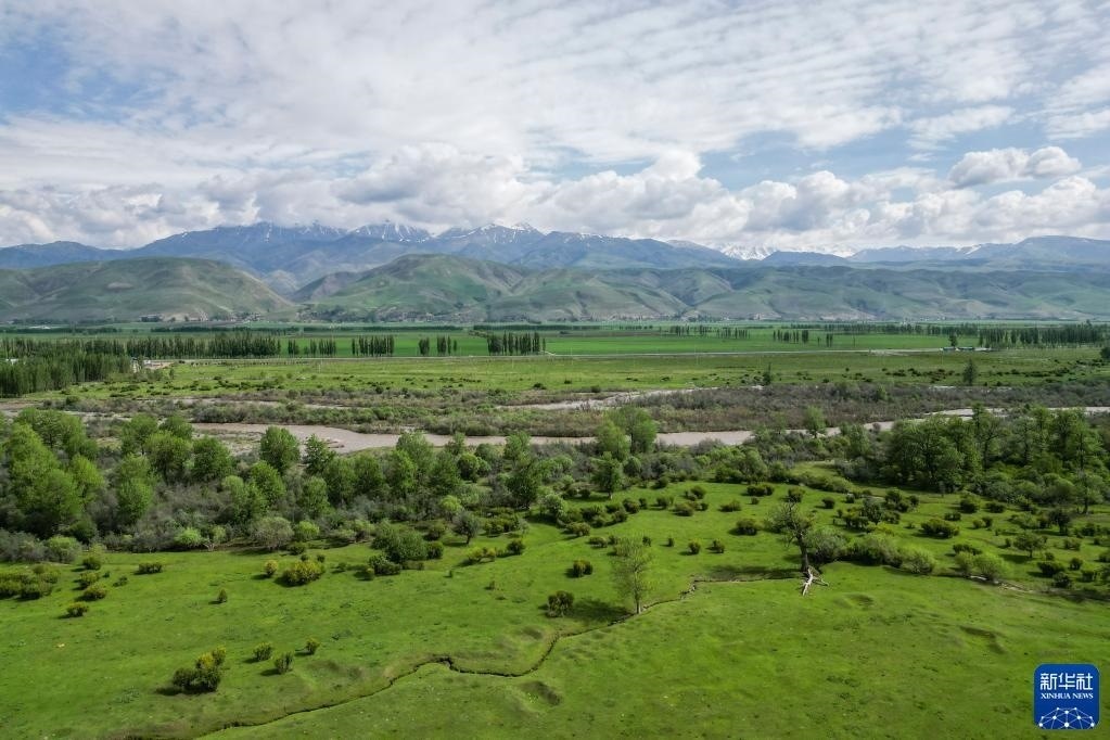 5月20日拍攝的那拉提河谷草原風(fēng)光(無人機(jī)照片)。