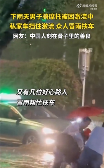 ·小車擋住激流后,眾人救回被困摩托,網(wǎng)友稱這就是中國人刻在骨子里的善良。