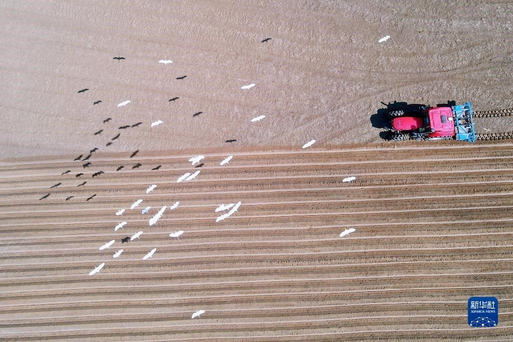 初夏時(shí)節(jié),江蘇省如皋市磨頭鎮(zhèn)天陽(yáng)社區(qū)農(nóng)田里,農(nóng)機(jī)在田野間往來(lái)穿梭,成群的白鷺在翻耕的土地上覓食、嬉戲,構(gòu)成一幅美麗的生態(tài)畫(huà)卷。