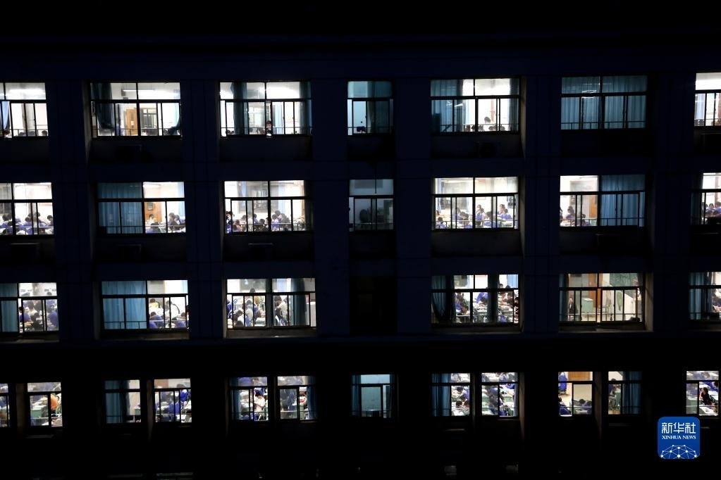 5月23日晚,在江蘇省連云港高級(jí)中學(xué)教室里,高三學(xué)生在上晚自習(xí)。