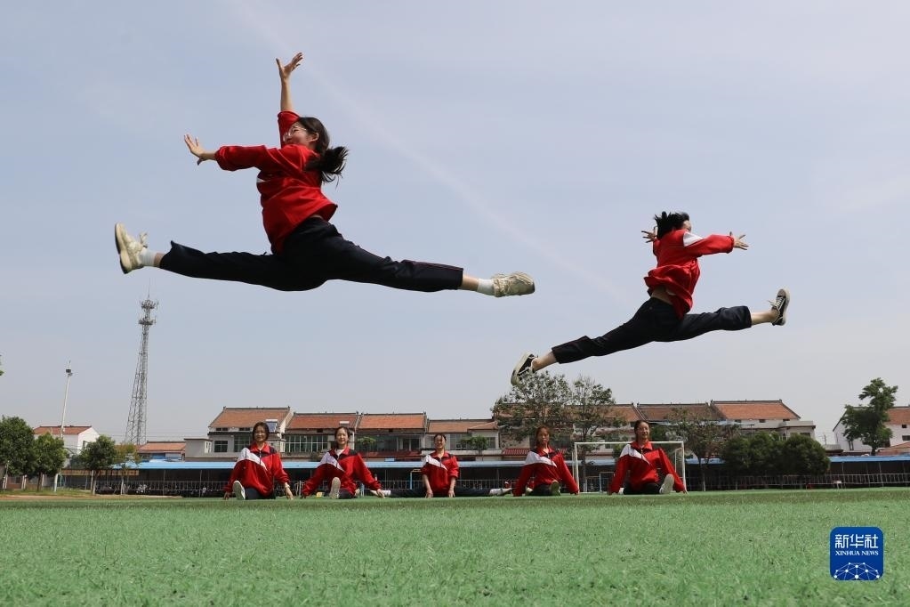 5月23日,河南省焦作市溫縣實(shí)驗(yàn)高中高三學(xué)生在操場(chǎng)上做活動(dòng)減壓。