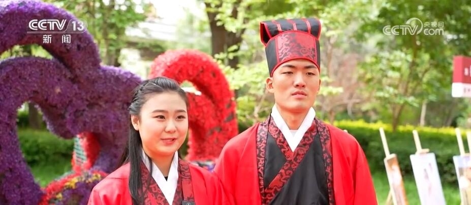 在江西貴溪、山東巨野等地,五月份組織了多場主題為“不要彩禮要幸?!钡募w婚禮,倡導新人們選擇簡約的婚禮儀式。在河北省河間市的集體婚禮現(xiàn)場,紅毯艷艷、絲竹裊裊,新人們身著傳統(tǒng)禮服,在證婚人、主婚人的見證下,按照周制漢婚的傳統(tǒng)儀式開啟他們愛的旅程。