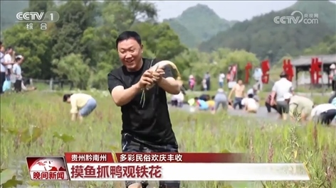 在貴州省長(zhǎng)順縣白云山鎮(zhèn)中院村的荷花池里,當(dāng)?shù)厝罕姾陀慰?0多人一起抓魚,場(chǎng)面熱鬧非凡。與此同時(shí),隔壁廣順鎮(zhèn)核子村的抓鴨子比賽也在熱鬧地舉行。人們顧不上泥漿和水,跟鴨子斗智斗勇,引得觀眾陣陣歡笑。