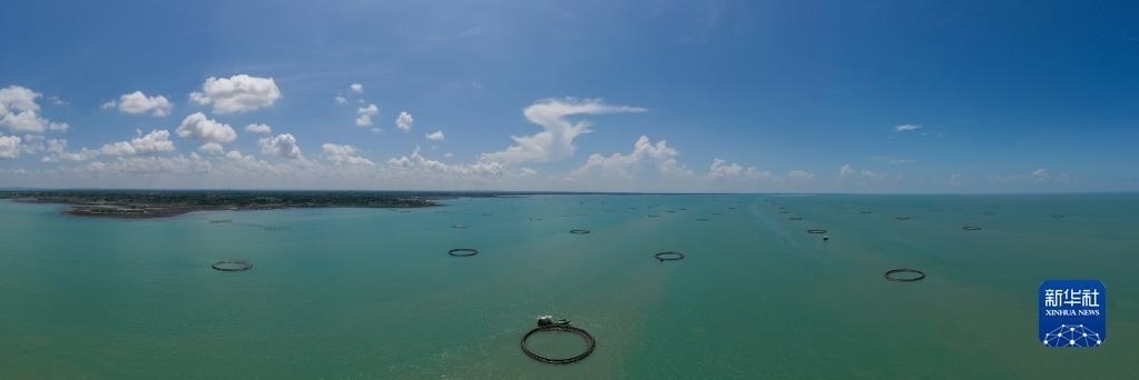 湛江徐聞西連鎮(zhèn)的“海上牧場”(5月27日攝,無人機照片)。