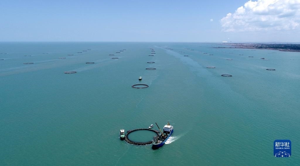 廣東省湛江市是全國最大的金鯧魚養(yǎng)殖基地之一,被譽為“中國金鯧魚之都”。在深藍色海面上,整齊分布著一串串100米左右周長的深海網(wǎng)箱,孕育著被譽為“黃金魚”的金鯧魚,年產(chǎn)量約10萬噸,約占全國產(chǎn)量三到四成,除了供應(yīng)中國市場,還出口到美國、印度、馬來西亞等國家和地區(qū)。隨著近年金鯧魚深海養(yǎng)殖規(guī)?;?、集群化、市場化步伐加快,小小“黃金魚”每年可創(chuàng)造百億元產(chǎn)值。