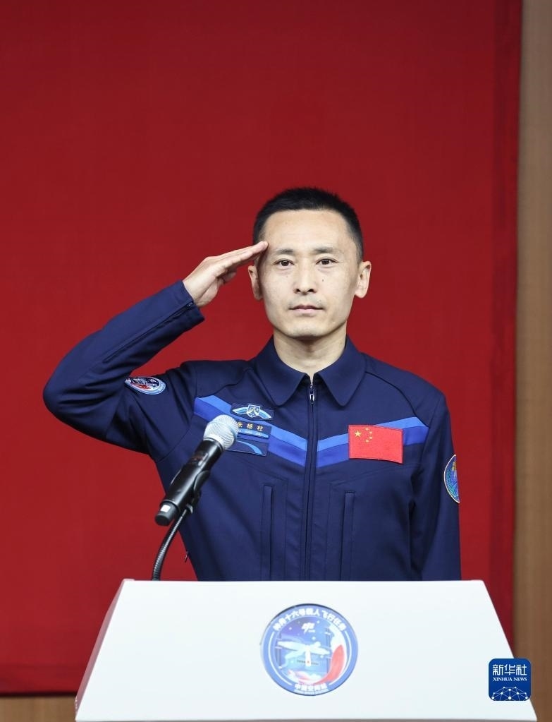 5月29日,神舟十六號航天員乘組與中外媒體記者集體見面會在酒泉衛(wèi)星發(fā)射中心問天閣舉行。這是航天飛行工程師朱楊柱在見面會上。