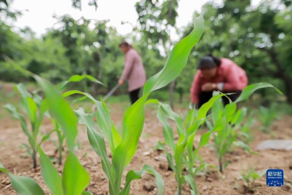 5月25日,在河北省遷西縣太平寨鎮(zhèn)馮莊村,農(nóng)民在管護栗樹林套種的玉米。