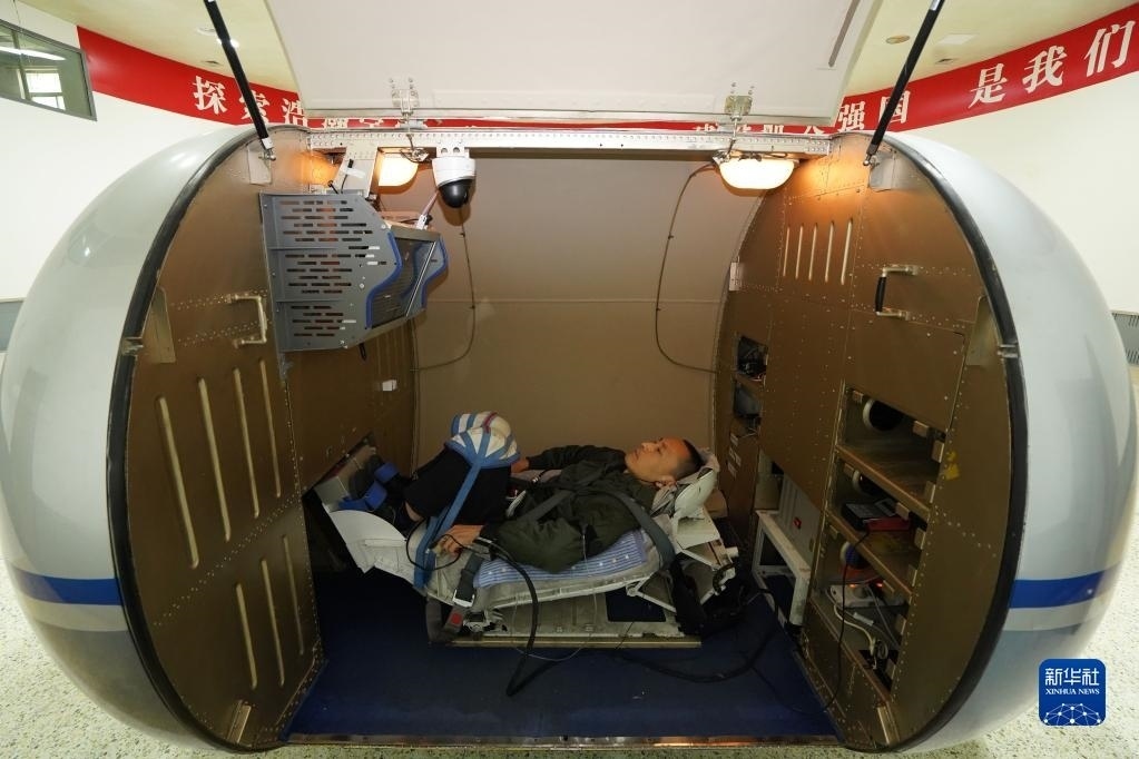 神舟十六號航天員乘組進行醫(yī)學(xué)研究項目操作(2023年3月9日攝)。新華社發(fā)(徐部 攝)