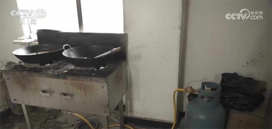 隨后,消防監(jiān)督員發(fā)現(xiàn),賓館疏散樓梯間里面液化氣罐、燃氣灶、操作臺、電飯煲、鍋碗瓢盆等廚房用具一應俱全,儼然一個小廚房,而在樓梯間另一側正在裝修的房間里設置了床位,供人員住宿。