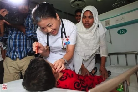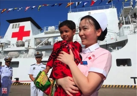 2013年,“和平方舟”號(hào)醫(yī)院船再次來到孟加拉國。上萬民眾自發(fā)涌向中國醫(yī)院船,最高單日門診1700余人次。3歲的阿里法·沁健康么?中國軍醫(yī)牽掛著她。她家住在偏僻農(nóng)村,中國軍醫(yī)設(shè)法找到了她,邀請(qǐng)她登上“和平方舟”號(hào)醫(yī)院船體檢。