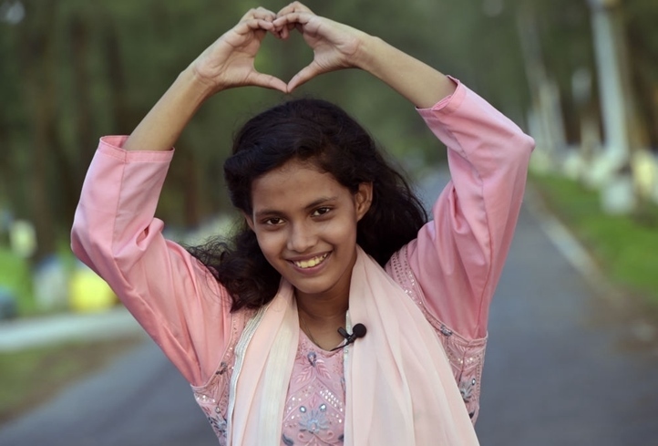 2023年5月26日,沁在孟加拉國做出愛心手勢(shì)表達(dá)對(duì)中國的愛意。新華社發(fā)