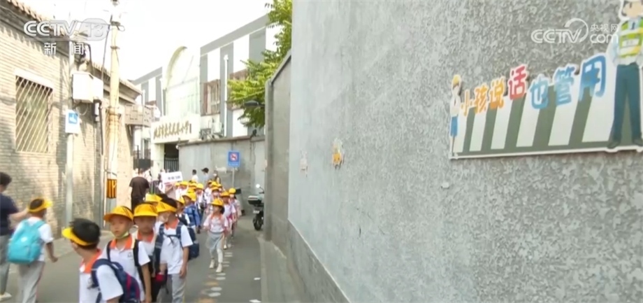 在北京東城小報房胡同有一條彩色的步道,就是專門為身高1米左右的低年級小學(xué)生設(shè)置的。