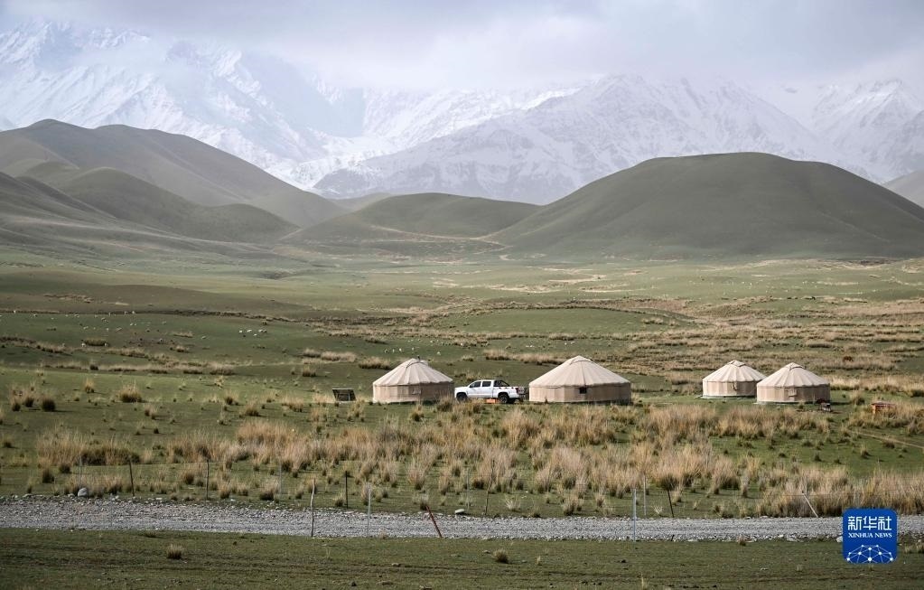 5月31日在新疆和田地區(qū)策勒縣昆侖山區(qū)拍攝的一處高山牧場(chǎng)景觀。新華社記者 胡虎虎 攝