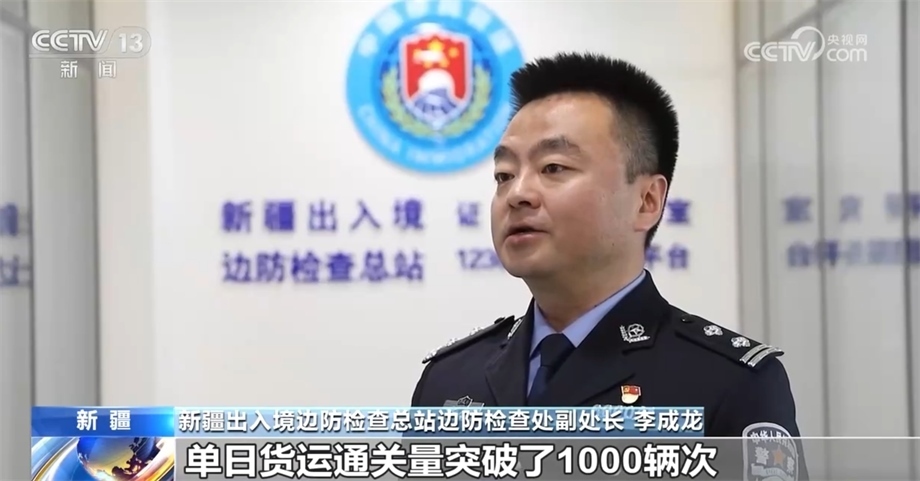 新疆出入境邊防檢查總站邊防檢查處副處長(zhǎng) 李成龍:今年以來(lái),霍爾果斯、阿拉山口等9個(gè)公路口岸通關(guān)量接連突破了歷史峰值,特別是霍爾果斯公路口岸,單日貨運(yùn)通關(guān)量突破了1000輛次。