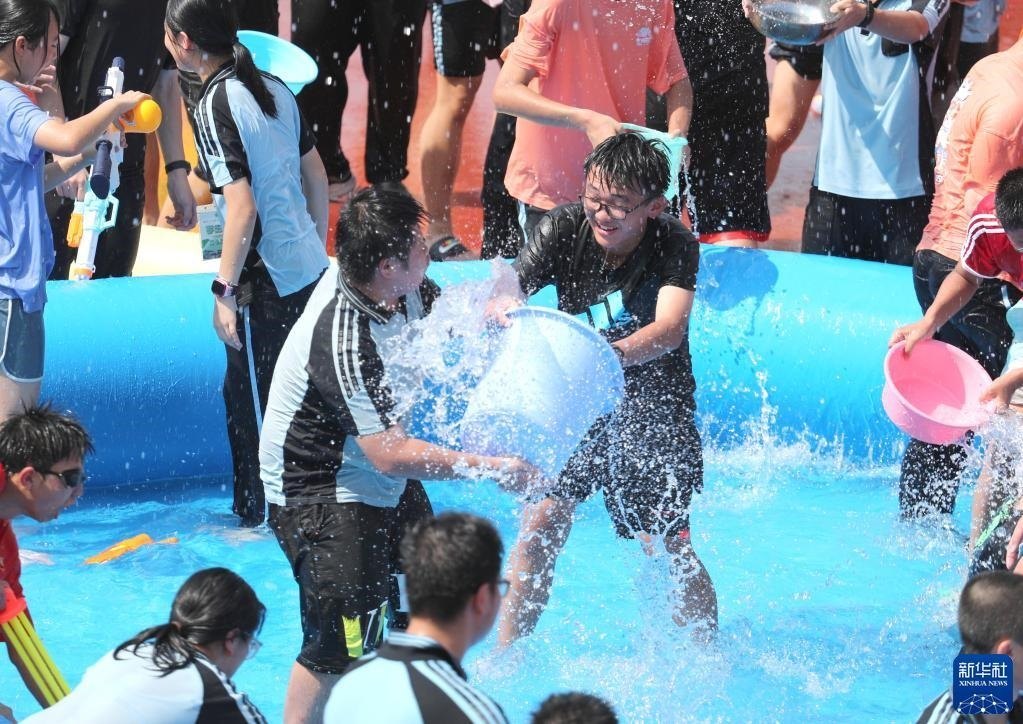 當日,廣西南寧市第三中學初中部青秀校區(qū)組織1500多名初三學生,在校園舉行潑水活動,以獨特方式讓學生們減輕考前壓力。