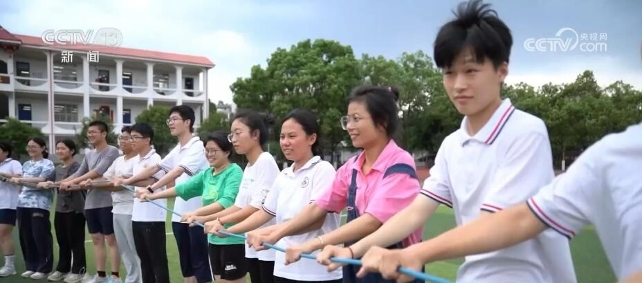 在四川廣漢中學(xué),一場(chǎng)專門針對(duì)高三學(xué)子的趣味接力賽正在開展。同學(xué)們?cè)谕瓿少惻?、跳繩等項(xiàng)目的同時(shí),需要團(tuán)隊(duì)協(xié)作完成顛網(wǎng)球、射門等項(xiàng)目。