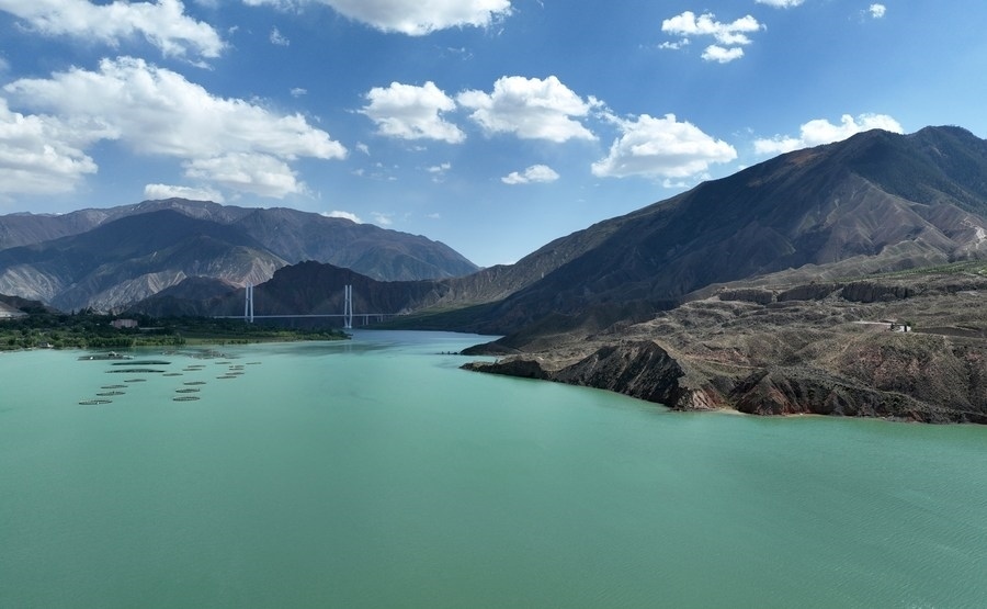 這是5月13日在黃河上游尖扎段拍攝的風光(無人機照片)。新華社記者 張宏祥 攝