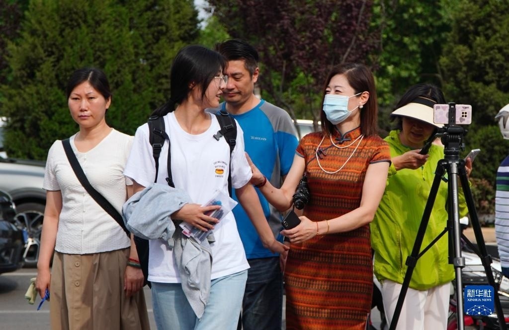 6月7日,考生在遼寧省實(shí)驗(yàn)中學(xué)考點(diǎn)外與老師合影留念。