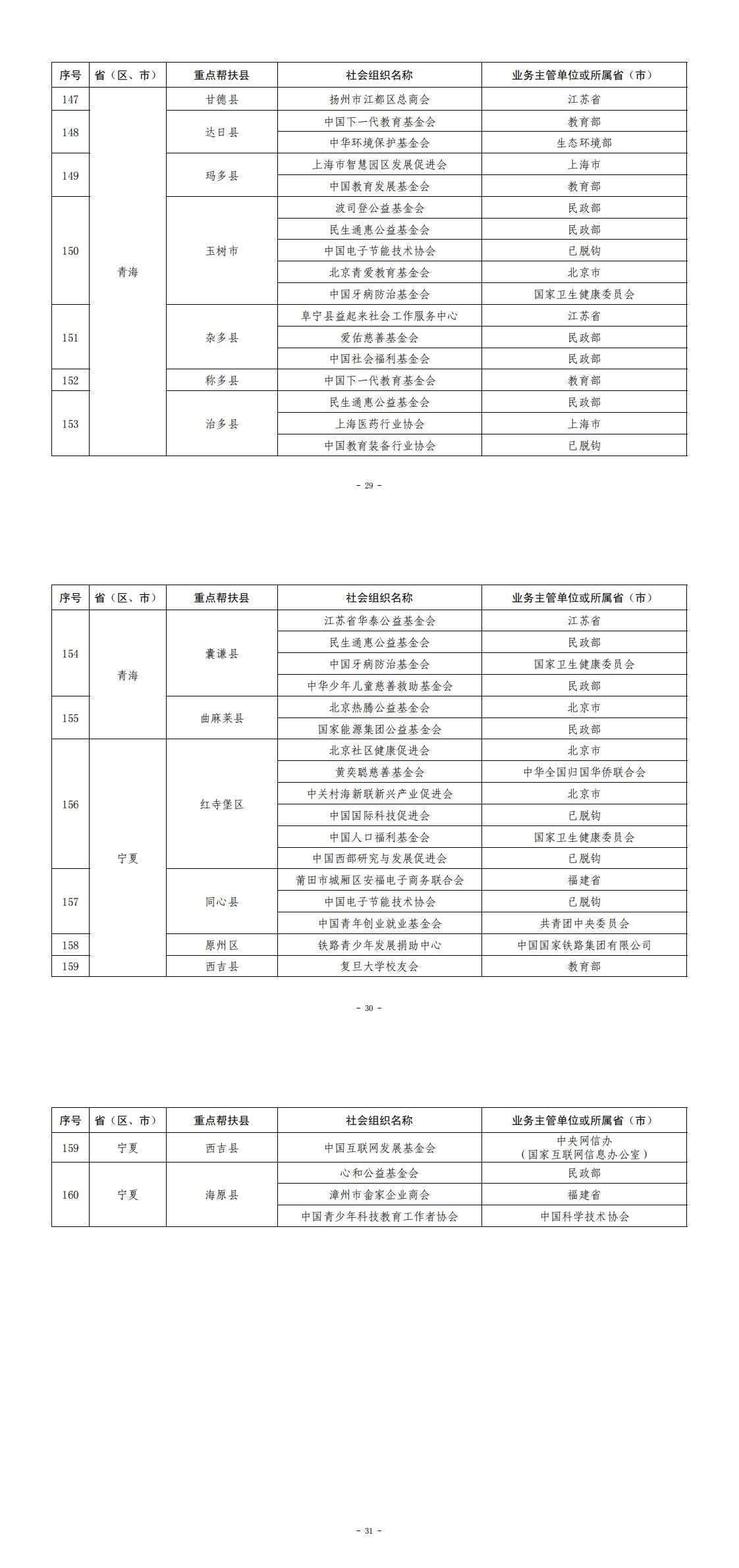 央視網(wǎng)消息:據(jù)民政部網(wǎng)站消息,為深入貫徹落實(shí)黨的二十大決策部署,根據(jù)《社會(huì)組織助力鄉(xiāng)村振興專項(xiàng)行動(dòng)方案》,民政部、國(guó)家鄉(xiāng)村振興局在社會(huì)組織自愿報(bào)名、有關(guān)部門推薦申報(bào)、160個(gè)國(guó)家鄉(xiāng)村振興重點(diǎn)幫扶縣同意對(duì)接的基礎(chǔ)上,形成了《全國(guó)性社會(huì)組織、東部省(直轄市)社會(huì)組織與160個(gè)國(guó)家鄉(xiāng)村振興重點(diǎn)幫扶縣結(jié)對(duì)幫扶名單》(見附件),現(xiàn)予印發(fā)執(zhí)行,有關(guān)工作通知如下。