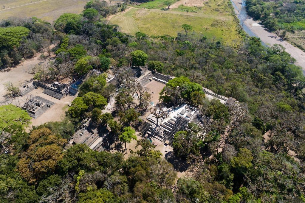 這是4月1日航拍的洪都拉斯科潘瑪雅古城遺址(無人機照片)。(新華社記者辛悅衛(wèi)攝)