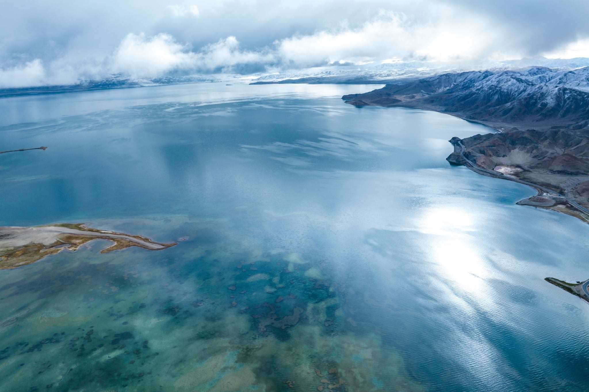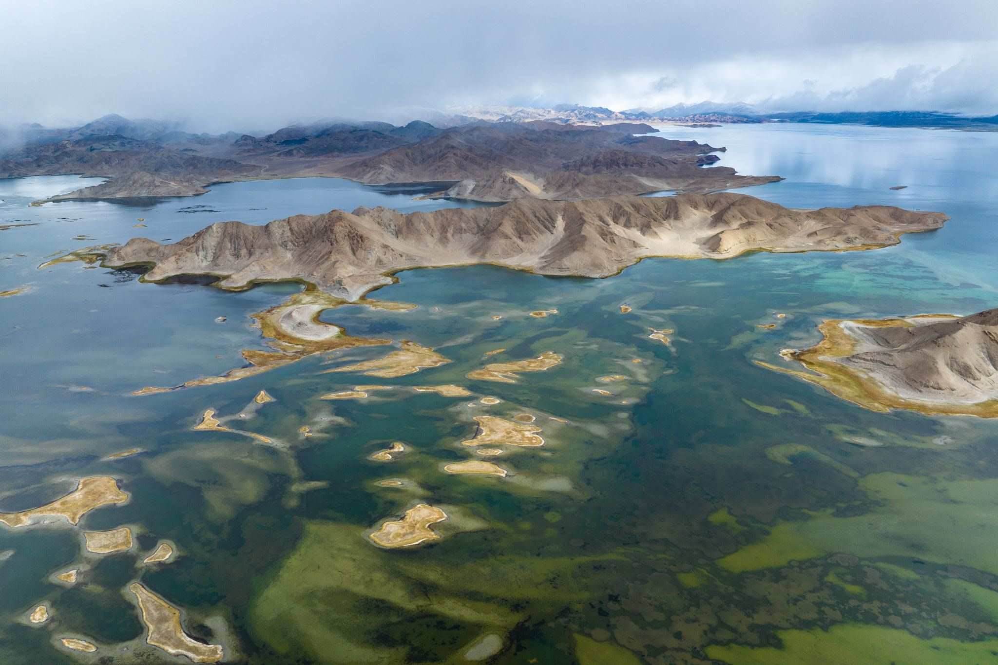2023年6月6日,西藏阿里,日土縣班公湖,湛藍(lán)的湖水、潔白的雪山、奇特的沿湖景觀,構(gòu)成一幅夏日醉美畫卷。視覺(jué)中國(guó)