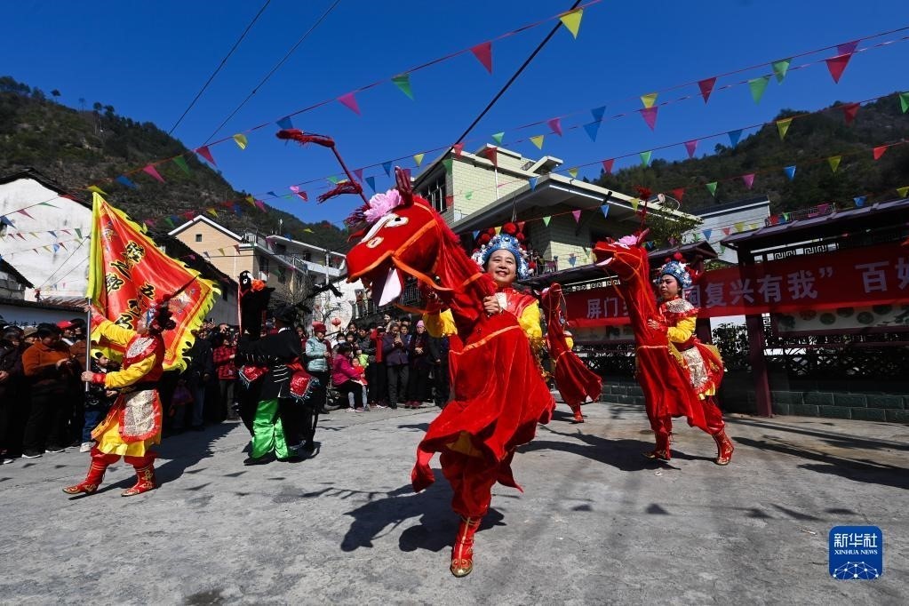 浙江杭州淳安縣屏門鄉(xiāng)屏前村傳統(tǒng)廟會(huì)上的竹馬表演(3月10日攝)。近年來,屏門鄉(xiāng)當(dāng)?shù)貙⒚袼妆硌?、踏青賞春、農(nóng)家特產(chǎn)展賣等融入傳統(tǒng)廟會(huì)中,成為美麗山鄉(xiāng)的春季熱鬧“大戲”,助力鄉(xiāng)村文旅融合發(fā)展和共同富裕。新華社記者 徐昱 攝