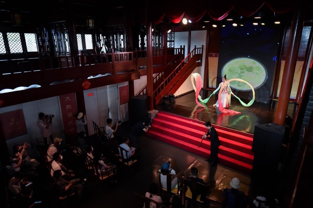 演員在北京顏料會館表演中國傳統(tǒng)舞蹈節(jié)目。新華社記者陳鐘昊 攝
