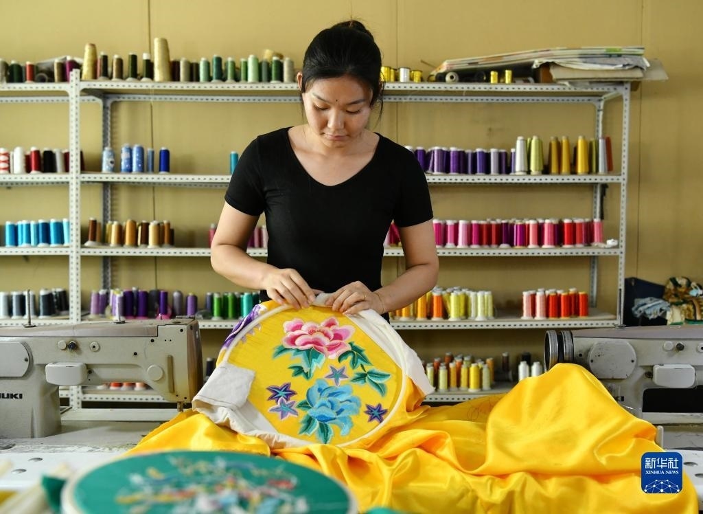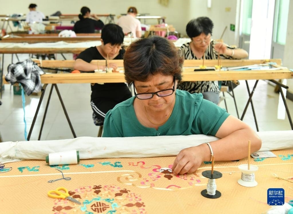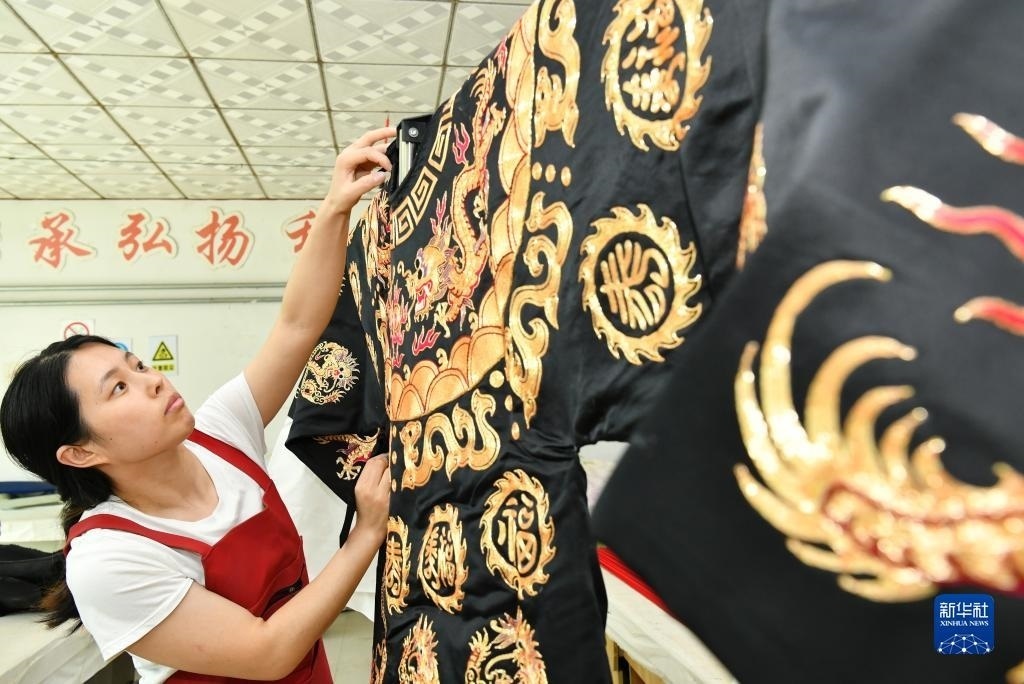河北省肅寧縣邵莊鄉(xiāng)東高家口村的戲曲服裝服飾制作技藝至今已傳承百余年,2017年被列入滄州市市級(jí)非物質(zhì)文化遺產(chǎn)名錄。近年來,當(dāng)?shù)卦谕七M(jìn)產(chǎn)業(yè)富民的過程中,積極推進(jìn)傳統(tǒng)技藝與現(xiàn)代工業(yè)生產(chǎn)有機(jī)融合,成立、引進(jìn)服裝加工企業(yè),為100多名當(dāng)?shù)亓羰貗D女提供就業(yè)崗位,在促進(jìn)居民增收的同時(shí),推動(dòng)了傳統(tǒng)非遺的傳承。新華社記者 牟宇 攝