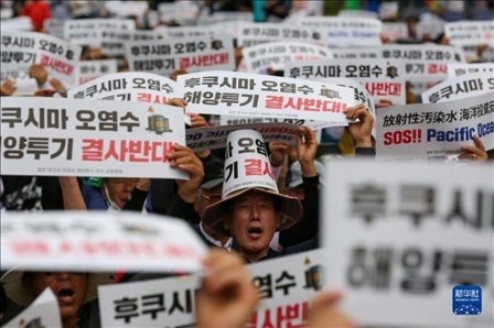 數(shù)千名韓國(guó)漁民集會(huì)反對(duì)日本核污染水排海。