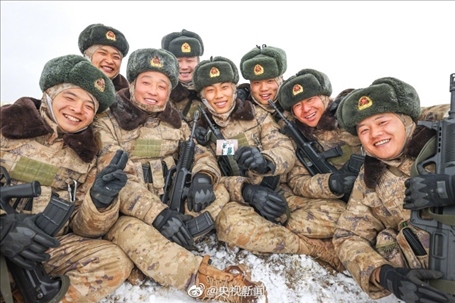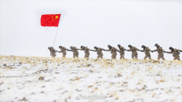 近日,新疆軍區(qū)某合成團(tuán)官兵在海拔5200米的高原,開(kāi)展邊境巡邏任務(wù)。皚皚白雪之上,邊防官兵手拉著手前行,臉頰凍得通紅,笑容卻堅(jiān)定又自豪。