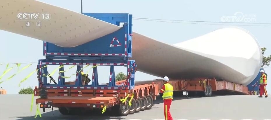 總臺記者 毛俊:為了保證葉片順利運(yùn)輸,各方做了大量的工作。比如,運(yùn)輸線路要求路寬8米,限高在6.5米以上,沿途的一些障礙物也會提前被清除,司機(jī)都擁有多年的風(fēng)電葉片運(yùn)輸經(jīng)驗(yàn)。而且在貨車前后都有專門的押運(yùn)車輛。228國道社會車輛較多,關(guān)鍵路段還有交警部門協(xié)調(diào)指揮交通。30公里的路程前前后后需要三到四個(gè)小時(shí)。14日下午,葉片就會運(yùn)送到連云港港口碼頭;15日進(jìn)行上船的吊裝,海上航行5天左右;20日抵達(dá)福建平潭外海的海上風(fēng)電場,進(jìn)行后續(xù)的整機(jī)組裝。