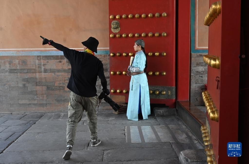 6月14日,一名攝影師(右一)在故宮內(nèi)拍照。