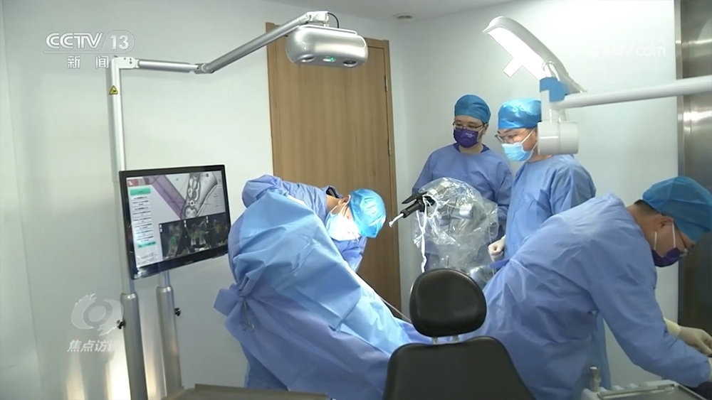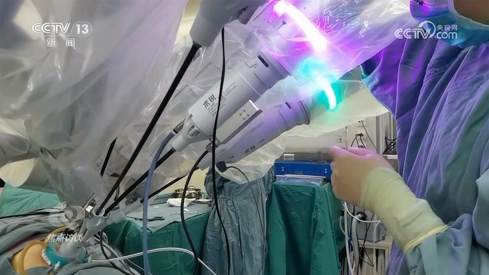 孫醫(yī)生使用的單孔腔鏡手術(shù)機(jī)器人由北京術(shù)銳研發(fā)。在68個高精度伺服電機(jī)的驅(qū)動下,單孔腔鏡手術(shù)機(jī)器人可以540度自由旋轉(zhuǎn),每秒可實(shí)現(xiàn)千次亞毫米級精準(zhǔn)操控,完成人手無法完成的工作。過去做類似手術(shù)需要在患者身上打四個孔,現(xiàn)在僅需一個。