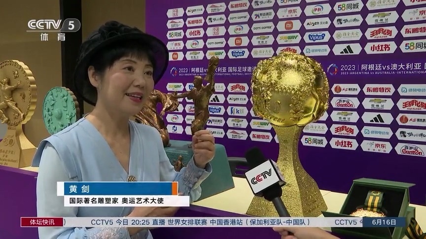 國(guó)際著名雕塑家 奧運(yùn)藝術(shù)大使 黃劍:設(shè)計(jì)的時(shí)候我在想,怎么讓這個(gè)紀(jì)念杯更加有它的魅力,既有文化內(nèi)涵,又有一種創(chuàng)新魅力。所以我就把它做成了一個(gè)音樂(lè)轉(zhuǎn)動(dòng)的雕塑紀(jì)念杯,想讓球王梅西拿著有一種珍藏的心。