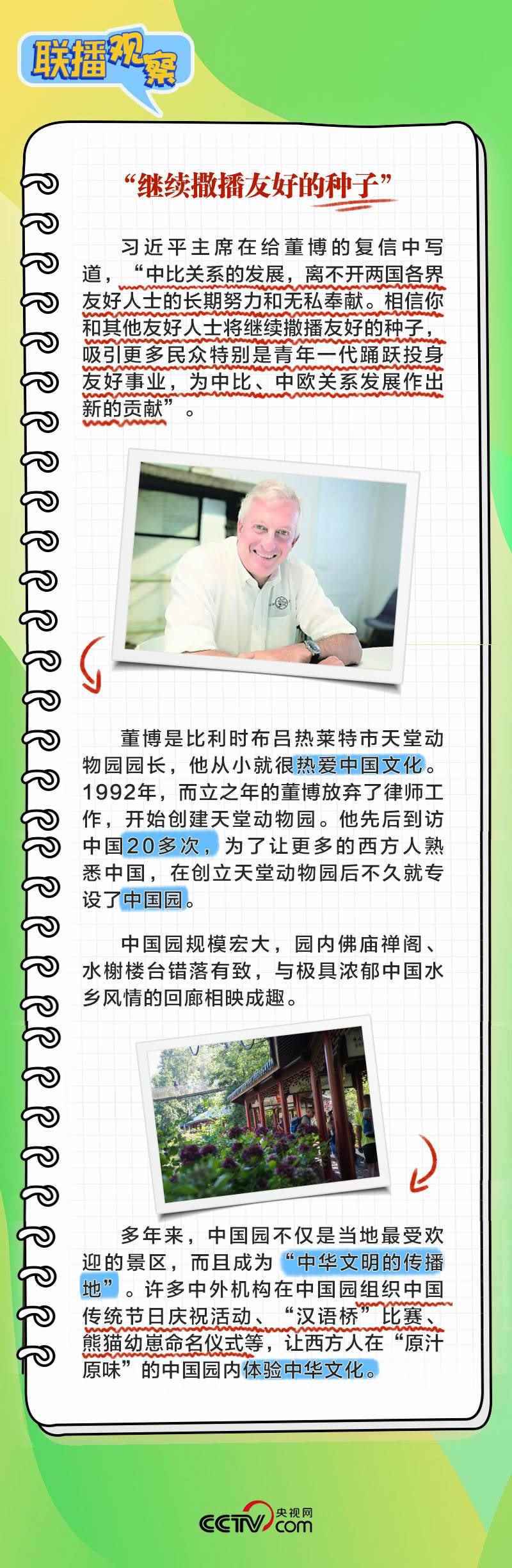董博是比利時布呂熱萊特市天堂動物園園長,他在給習主席致信中回顧了習主席和夫人彭麗媛2014年3月訪比期間出席天堂動物園大熊貓園開園儀式的情景,表示中國園體現人與自然和諧共生理念,中國夢和中國的發(fā)展繁榮永遠是可共享的機遇。