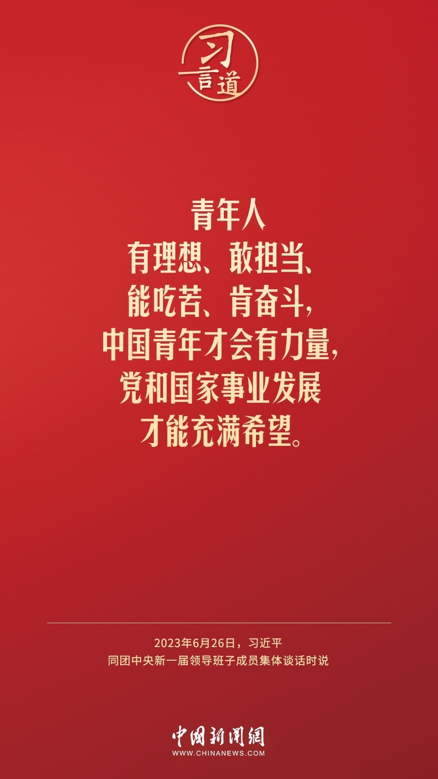 6月26日,中共中央總書記、國家主席、中央軍委主席習近平在中南海同團中央新一屆領導班子成員集體談話并發(fā)表重要講話。習近平指出——