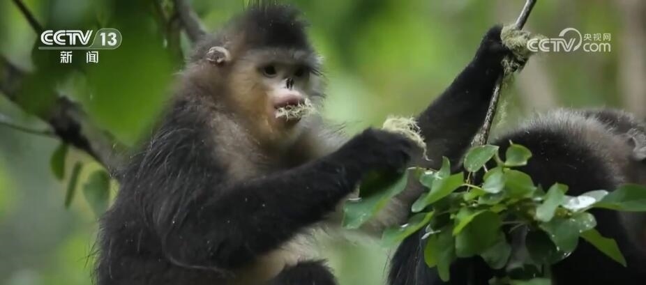 國家林草局林草科普首席專家 張志翔:滇金絲猴對植被的要求真的很特殊,它就是要暗針葉林,還有松蘿,原始森林只有暗針葉林當中才出現(xiàn)大量的松蘿。另外,還有高山地帶的闊葉林,云霧繚繞的環(huán)境才可能出現(xiàn)松蘿或者這種地衣,而且主要是枝狀地衣。
