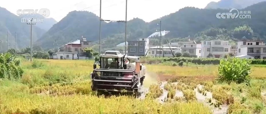 湖南:金秋水稻收割忙 風(fēng)吹稻浪好“豐”景