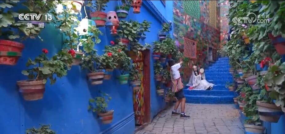 走出這戶人家,在喀什古城里走走停停,古城里的顏色猶如萬花筒一般,有藍(lán)色、紫色、黃色,正如艾德萊斯綢一般繽紛絢麗。遇到來自全國各地的游客,也會聽到五湖四海的口音。今年以來,旅游熱度不斷攀升,比如三五米就會遇到一家旅拍店,古城的旅拍店已經(jīng)發(fā)展到160多家。