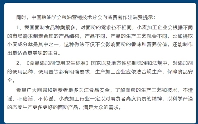 ·面粉添加“科技與狠活”?中國糧油學會營銷技術分會辟謠:與事實不符。