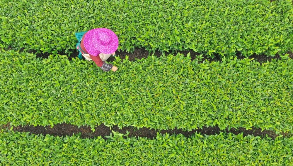 ↑2023年9月6日,浙江省臺州市仙居縣上張鄉(xiāng)方山村,茶農在采摘秋茶。CICPHOTO/王華斌 攝