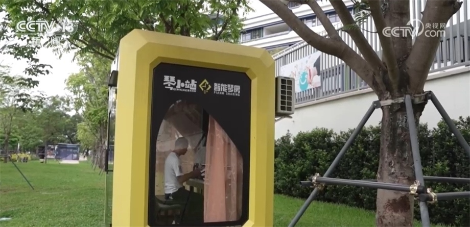 總臺央視記者 喬亞美:在深圳的街頭,我們發(fā)現(xiàn)了一些像我身后這樣的小型智能琴房,我們了解到,像這樣的智能琴房只需要通過小程序或者手機掃碼提前預約就可以免費使用了,我已經(jīng)提前預約了這會兒的時間,我們一起去體驗一下。