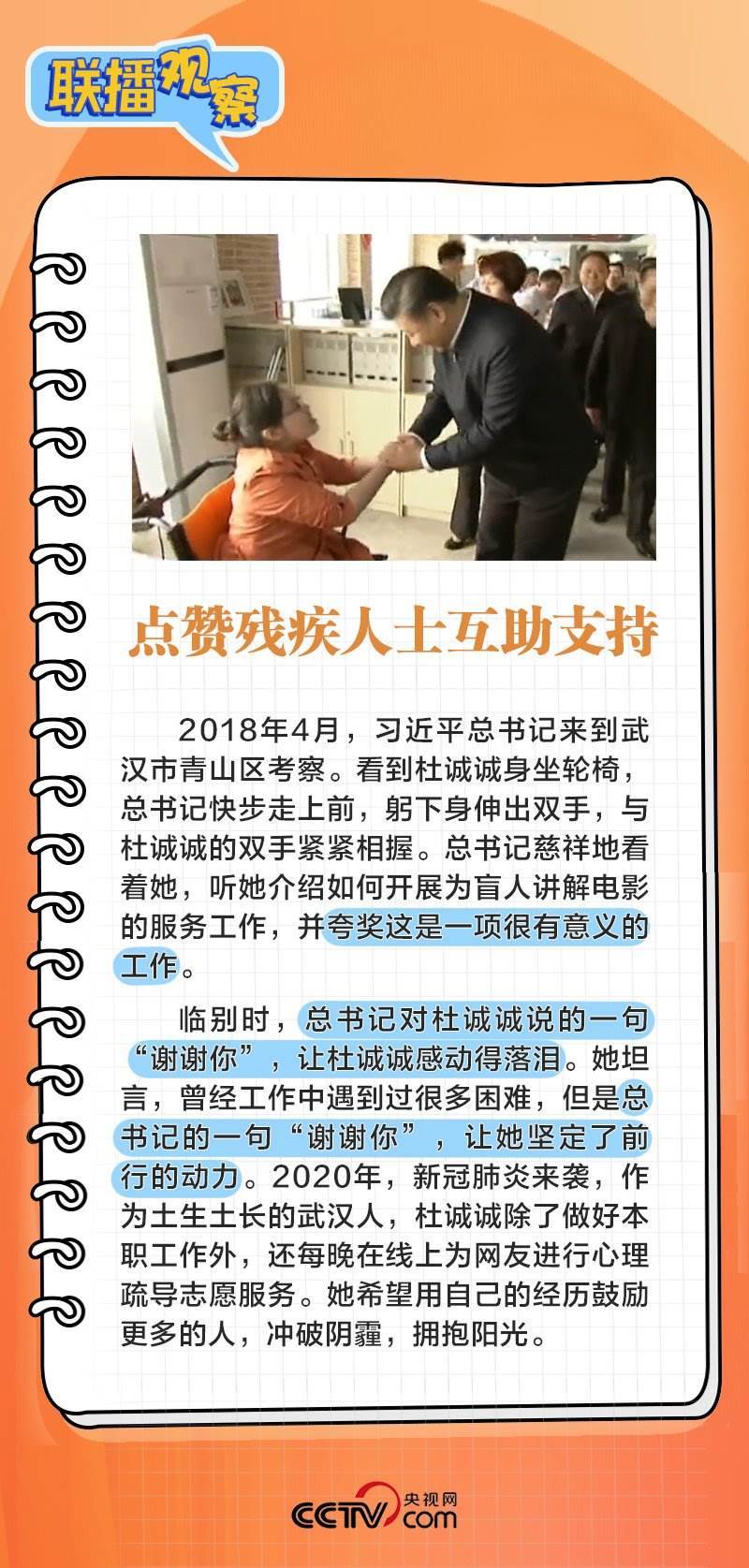 無論是在地方還是在中央工作,習(xí)近平都對殘疾人群體格外牽掛,給他們留下了很多溫暖的記憶。黨的十八大以來,以習(xí)近平同志為核心的黨中央對殘疾人事業(yè)格外關(guān)心、格外關(guān)注,殘疾人的獲得感、幸福感、安全感顯著增強。